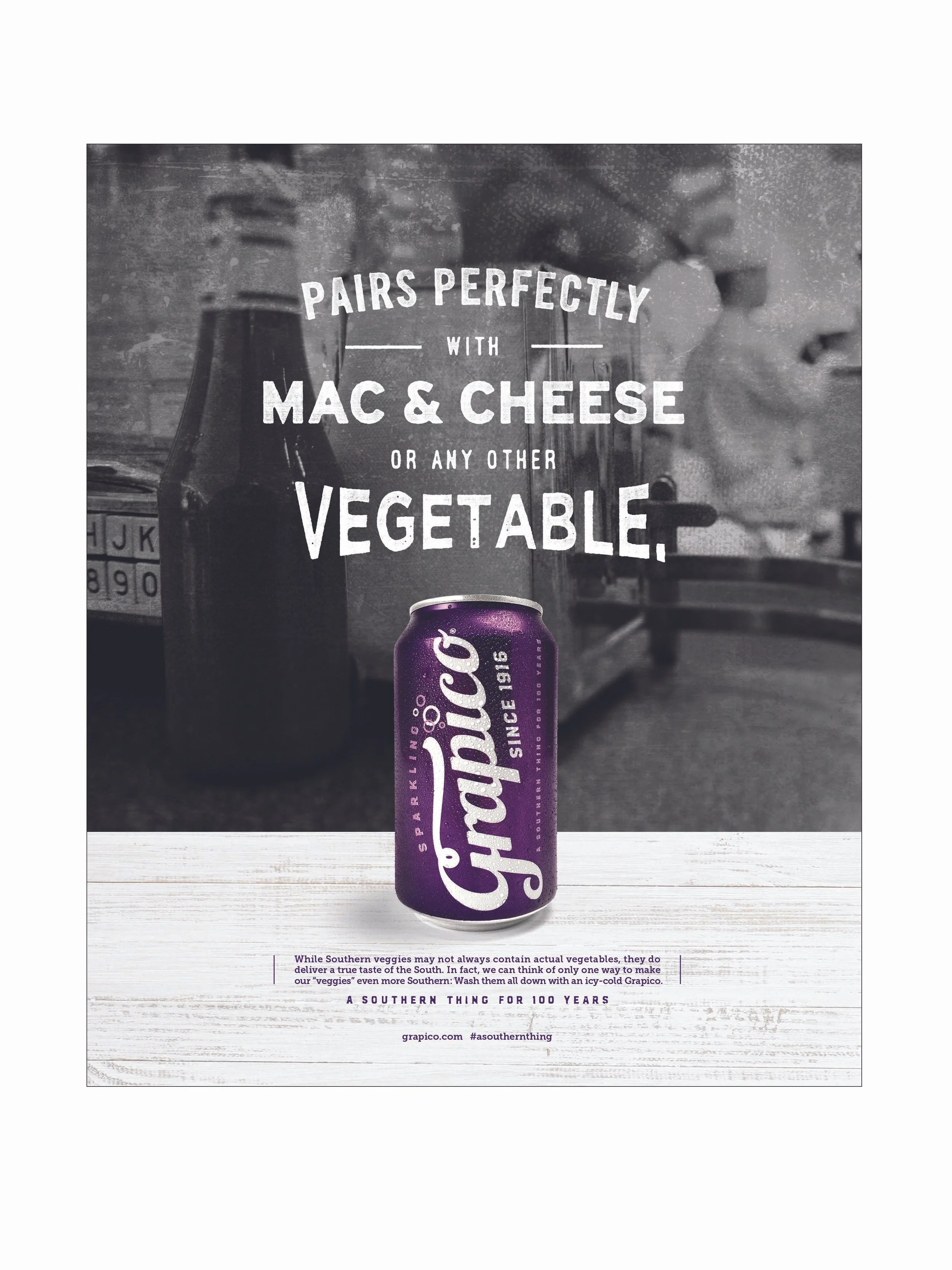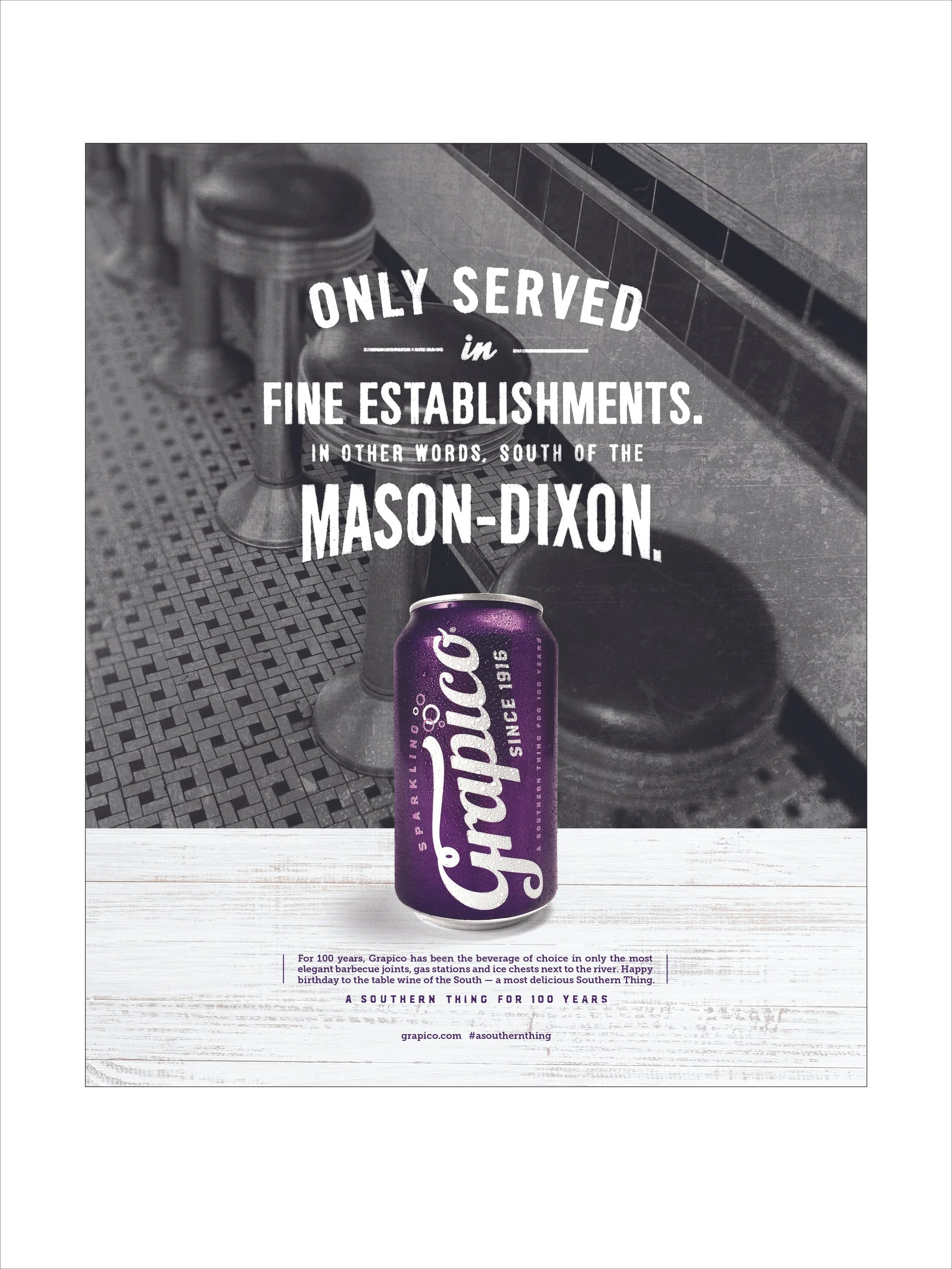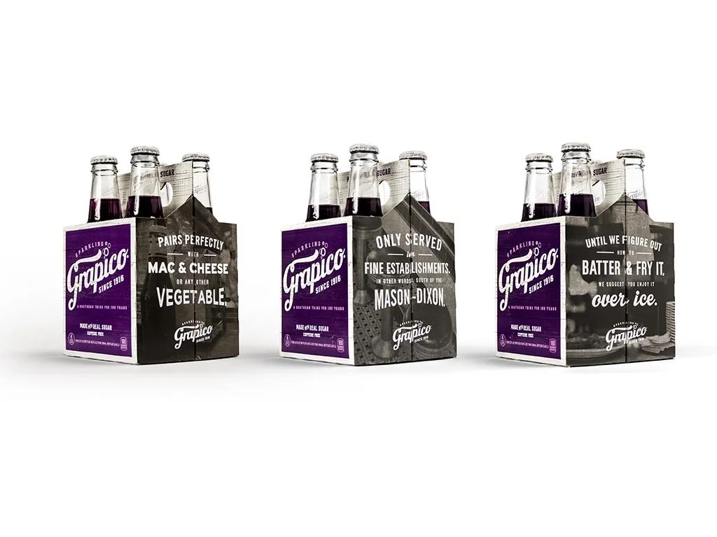Rebranded a 100-year old southern icon by calling upon its nostalgic roots deeply embedded in memories of growing up in the South. To help promote Grapico’s nostalgic-based rebranding we tapped into the styles, textures and feels of a by-gone era with resounding success - garnering a Best In Show award at the 2017 Birmingham addys.